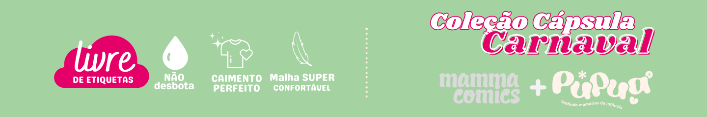 A coleção cápsula de Carnaval foi feita pra curtir em família. Juntos e confortáveis com 100% algodão, LIVRE DE ETIQUETAS e qualidade Reserva. Collab mammacomics + Pupua